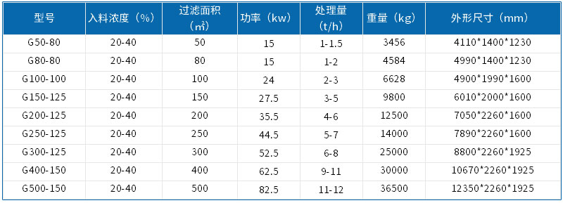5、與其他類型脫水機相比泥餅含固率.高,占地面積小,方便運輸等后期處理。