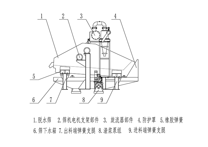 該設備一般直接安裝于洗砂機后部,設備上的脫水篩對洗砂機的成品物料進行再一步脫水,設備上的回收系統(tǒng)則對洗砂機排出的廢料進行再回收,充分解決了洗砂機的弊端(如:成品含水量大、含泥量大、粉塵多、雜質難以清除等),大大提高了成品的品質。旋流器將洗砂廢水中的細砂與水分離后,將濃度被提升至60-70%的細砂排入脫水篩表面進行脫水,實現(xiàn)細砂的脫水回收。