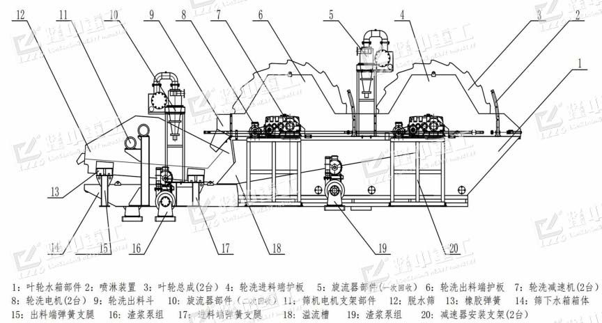 1、雙重水洗:物料經(jīng)過兩次洗沙輪的清洗,清洗凈度高,使物料更加干凈。