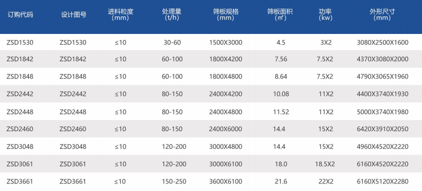 4、規(guī)格多樣:ZSD系列振動(dòng)篩型號(hào)齊全,并有振動(dòng)電機(jī)和激振器兩種振源形式,可適應(yīng)不同作業(yè)環(huán)境需求。